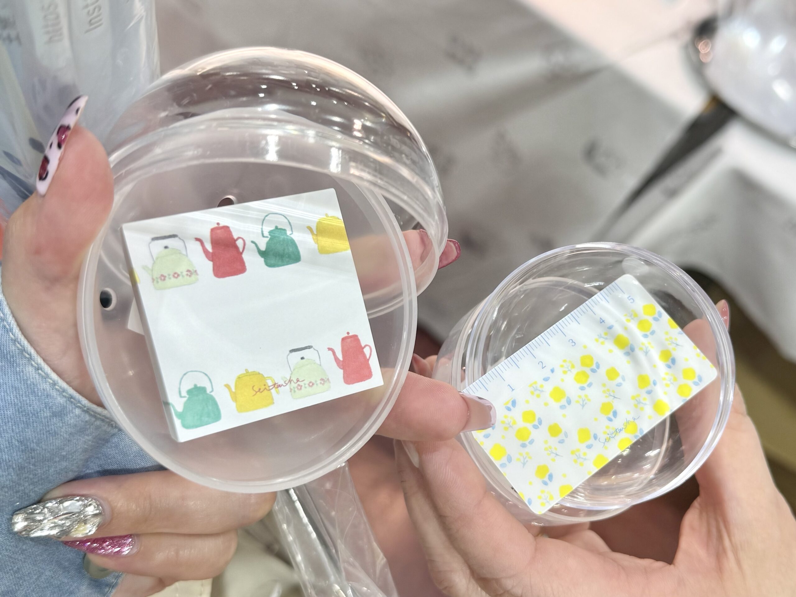 定規は黄色いお花の柄、メモパッドはケトルの柄をゲットしました!