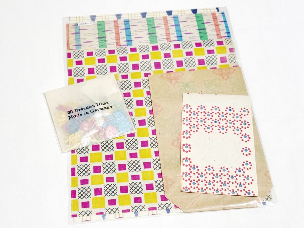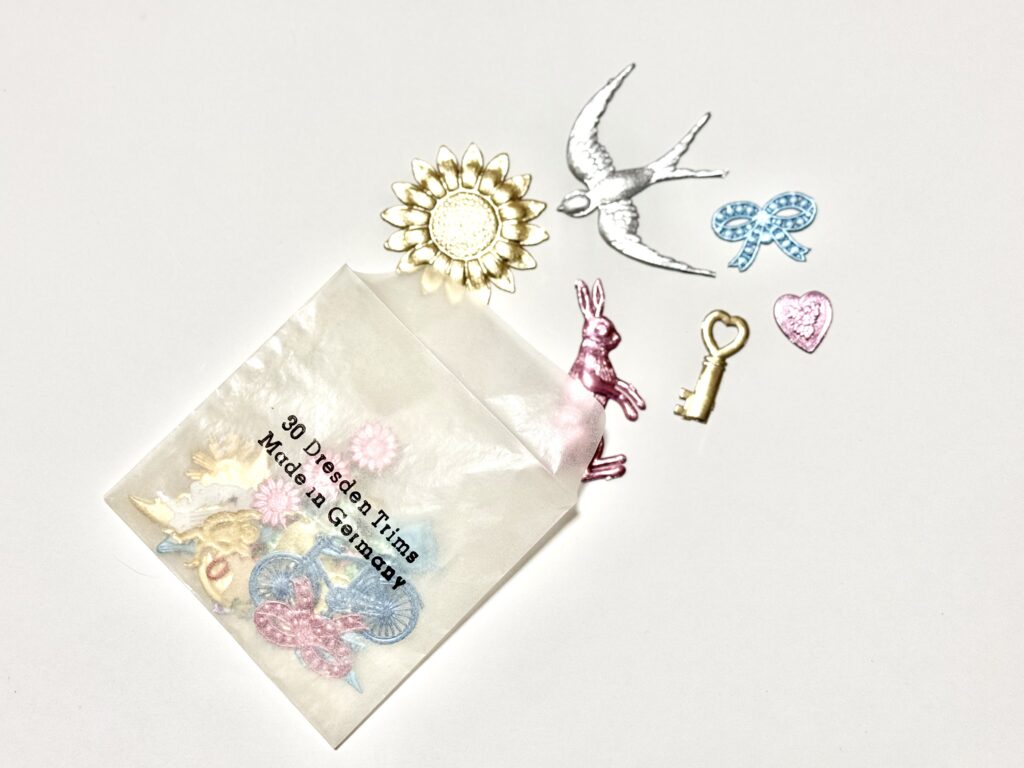 左にある小さな袋に入っているのは「ドレスデントリム」という紙のデコレーションです。