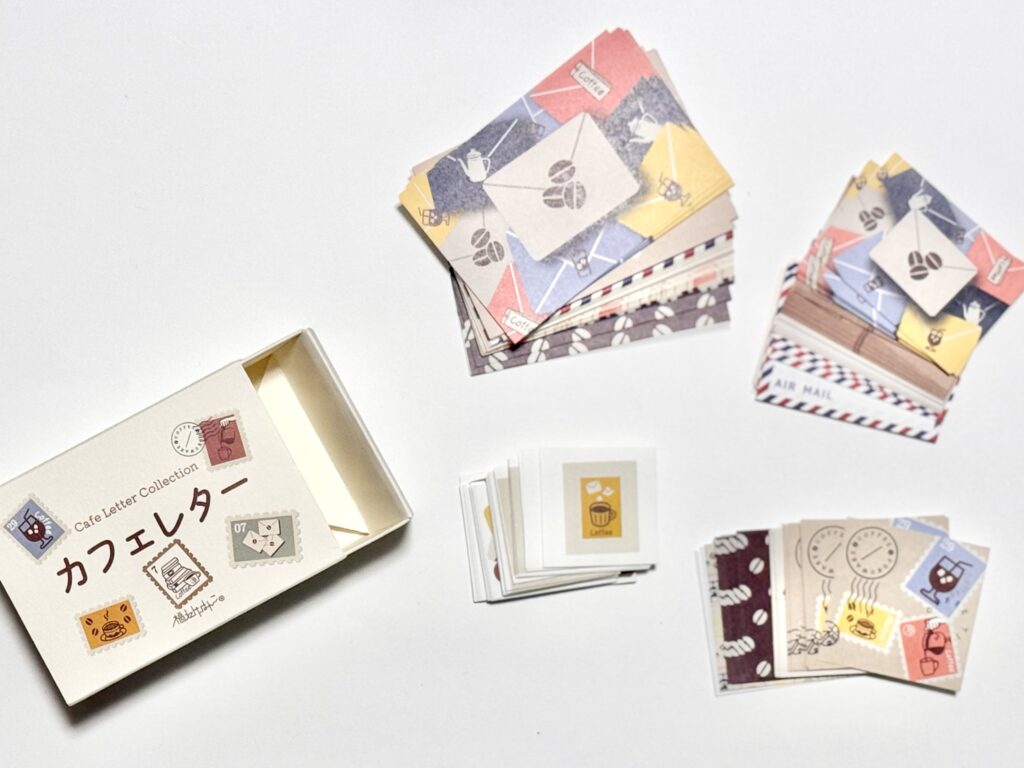 カフェレターの箱の中には、このようにかわいらしい紙モノがたくさん詰め込まれています。使うのがもったいない…!