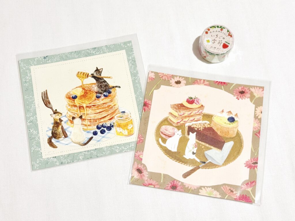 今回は、パンケーキやミルフィーユの表面がおおいしそうだな〜と思ったのでこちらのポストカード2枚を選びました。